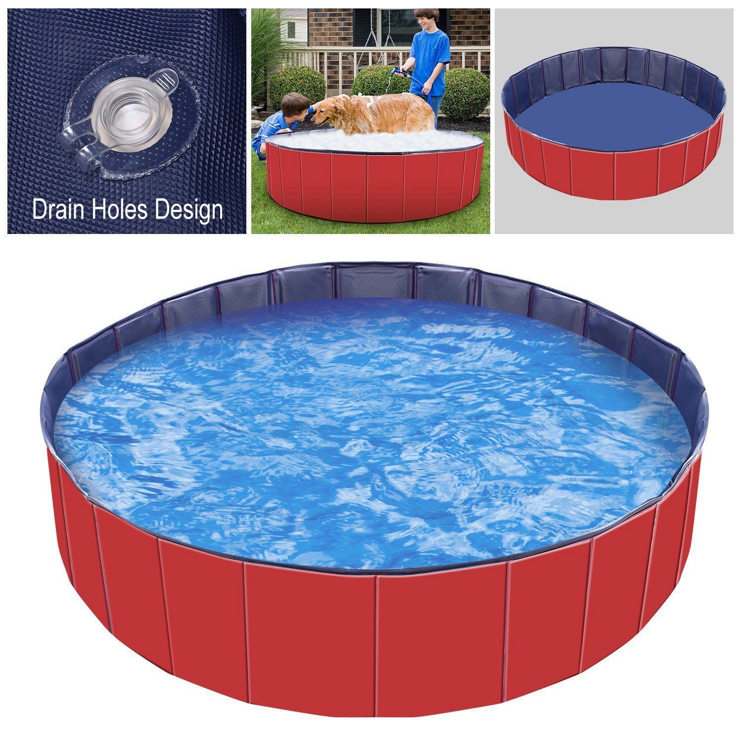 *Multipurpose*:This foldable swimming pool has many uses including a cat or dog pool; dog bathing tub; toddler swimming pool; sandbox; outdoor water pond; fish pond; baby bathtub or ball pit. A great ideal for your pet or kids to enjoy those beautiful summer days!