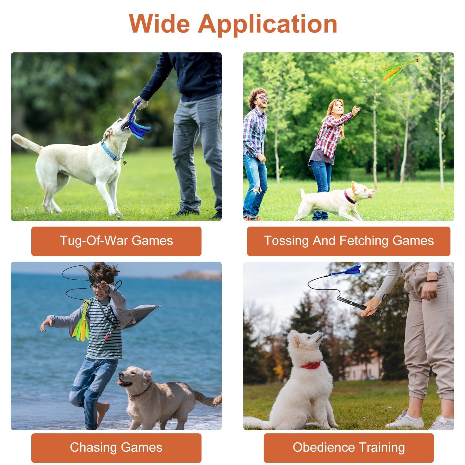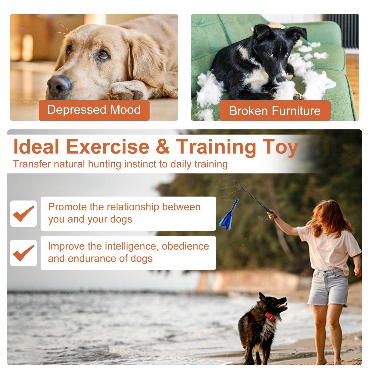 *Ideal Exercise & Training Toy*:Our dog flirt pole is a perfect tool to deplete your dogs’ sufficient energy by inducing them to chase,jump,sprint to catch the tail toy tied on the rope,transferring their natural hunting instinct to daily training. Not only can promote the relationship between you and your dogs,but also improve the intelligence,obedience and endurance of you furry friends.