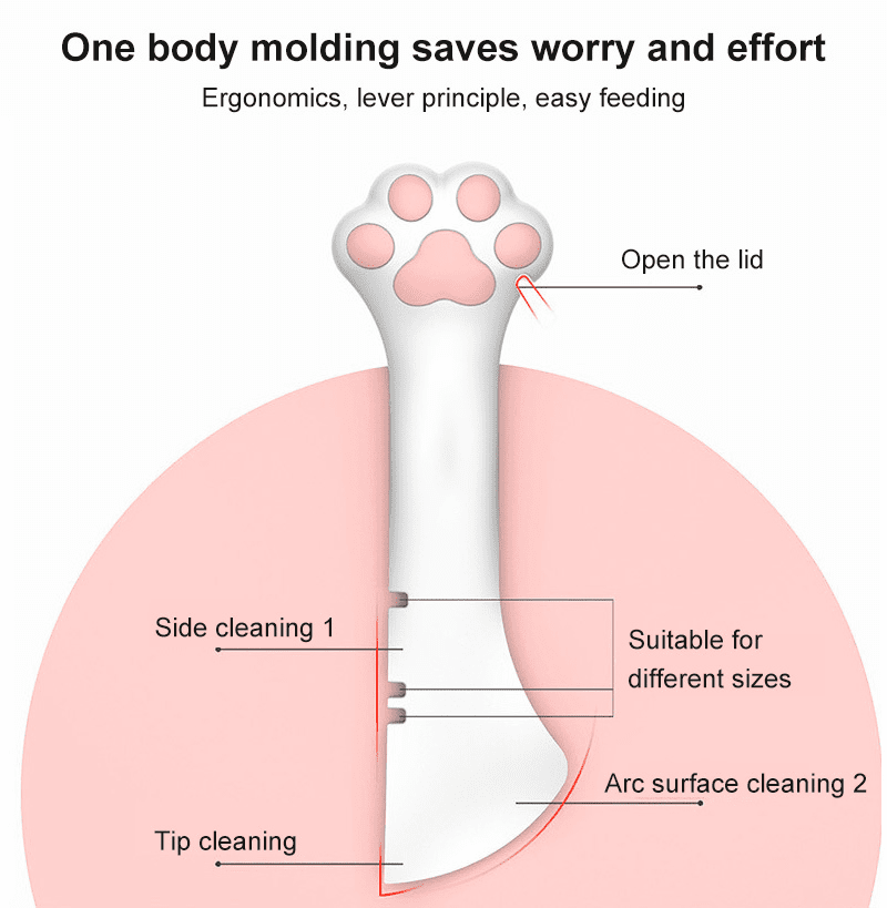 The short food spoons feel is like a real paw; very cute and Soft; It is also more durable and does not break easily.